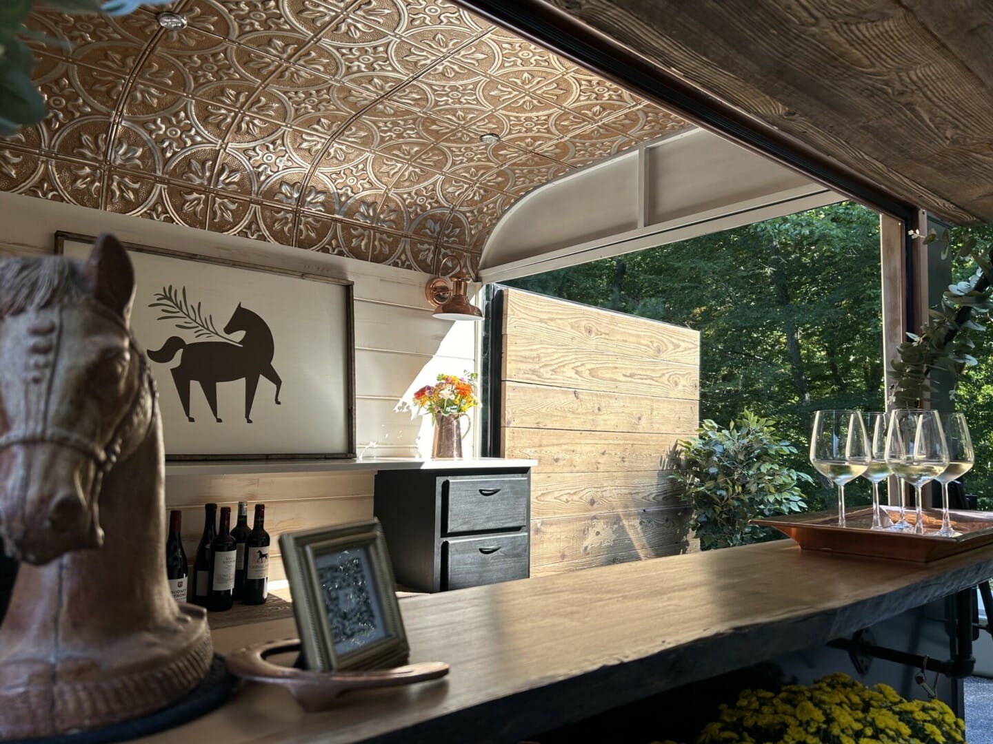 Copper Pony is a new mobile bar that exudes rustic charm and elegance. It is crafted from a converted horse trailer and nestled in the heart of Chester County, PA.
